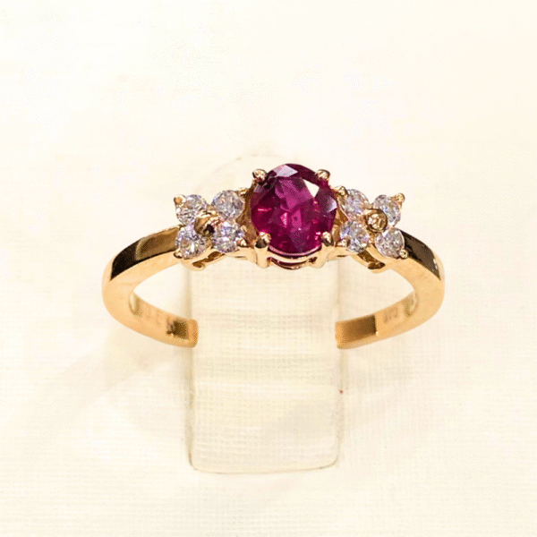 Illuminate your style with this stunning 0.55 Ct Ruby and 0.18 Ct Diamond Ring, exquisitely set in 18K rose gold. The rich red ruby, symbolizing love and vitality, glows with warmth and elegance, while the sparkling diamonds add a touch of brilliance that enhances its fiery allure. Expertly crafted with a modern yet classic design, this ring is perfect for romantic occasions or as a statement of refined taste. A true embodiment of passion, sophistication, and everlasting beauty.